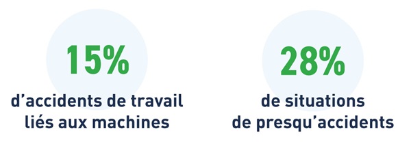 Au cours des deux dernières années, les accidents de travail liés aux machines sont un fait pour 15% des répondants, et les situations de quasi-accidents pour 28%. Ce taux grimpe pour les machines de plus de 15 ans, avec 23% d'accidents et 43% de quasi-accidents.