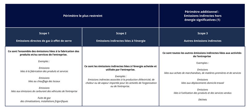 A compter du 1er janvier 2023, pour les entreprises soumises à la Déclaration de Performance Extra-Financière (DPEF) mais aussi pour les services de l’Etat, les collectivités, les établissements publics et autres personnes morales publiques, le bilan GES devra intégrer le scope 3 c'est-à-dire les émissions indirectes significatives qui découlent des opérations et activités de la personne morale mais aussi de l'usage des biens et services qu'elle produit.